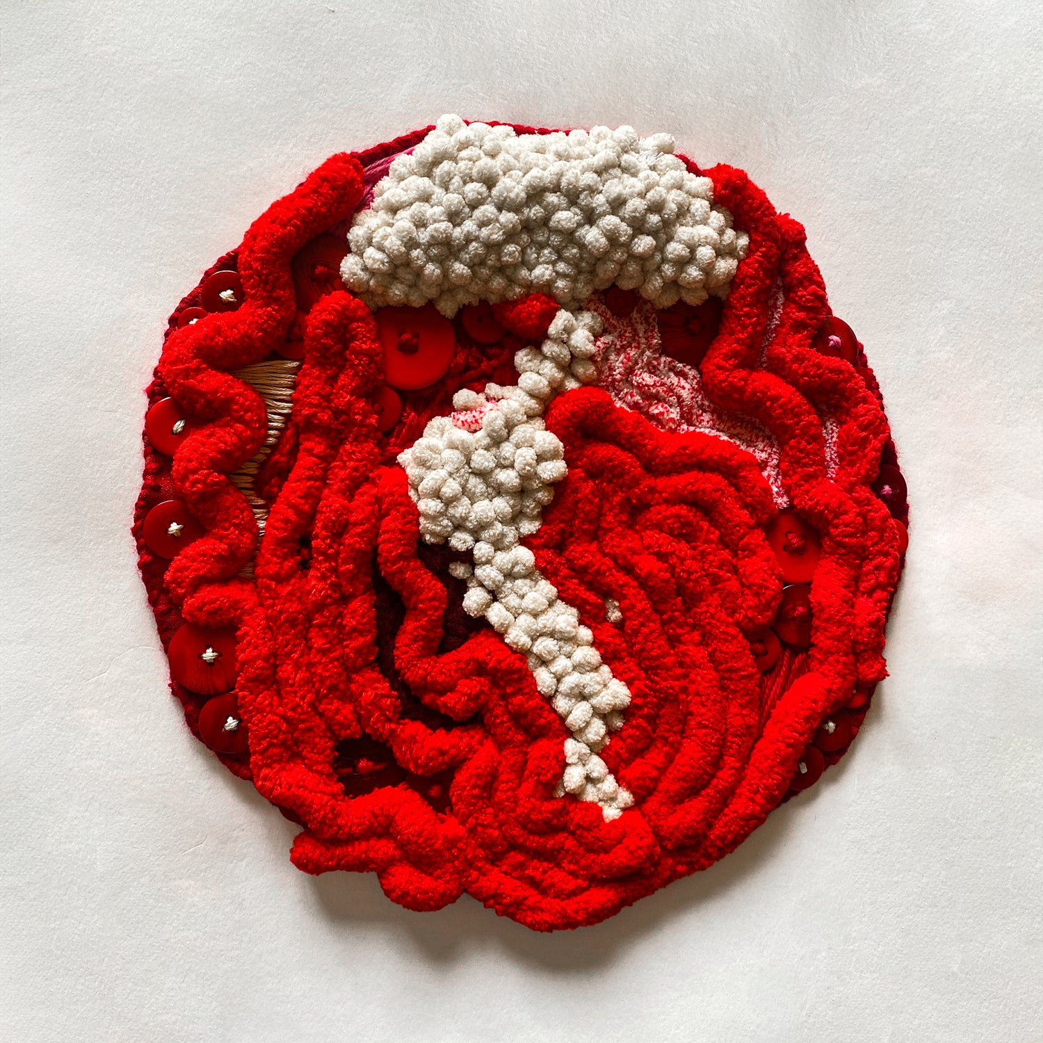Yarn and buttons on fabric