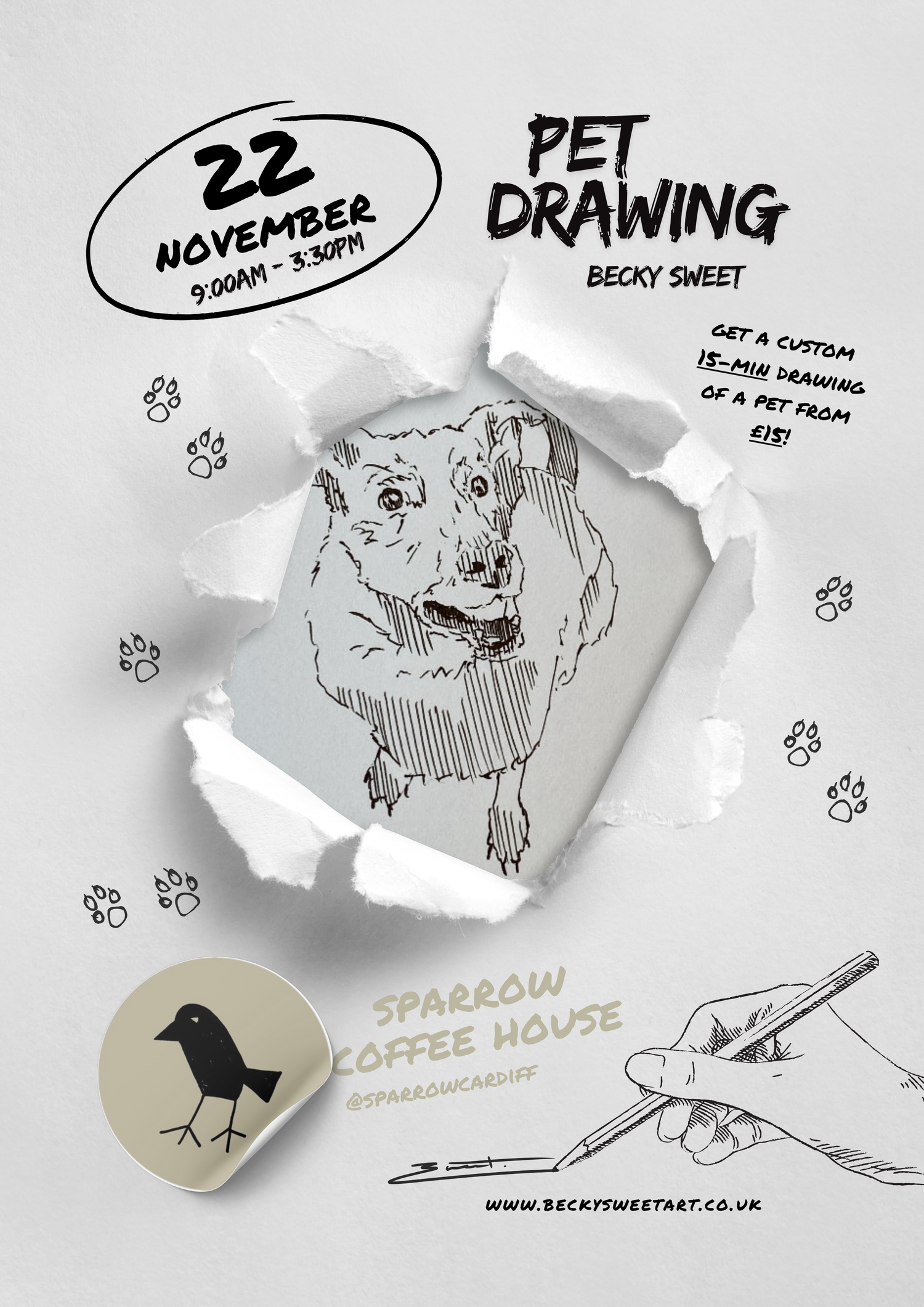 Live Pet Drawing at Sparrow Coffee House, Cardiff